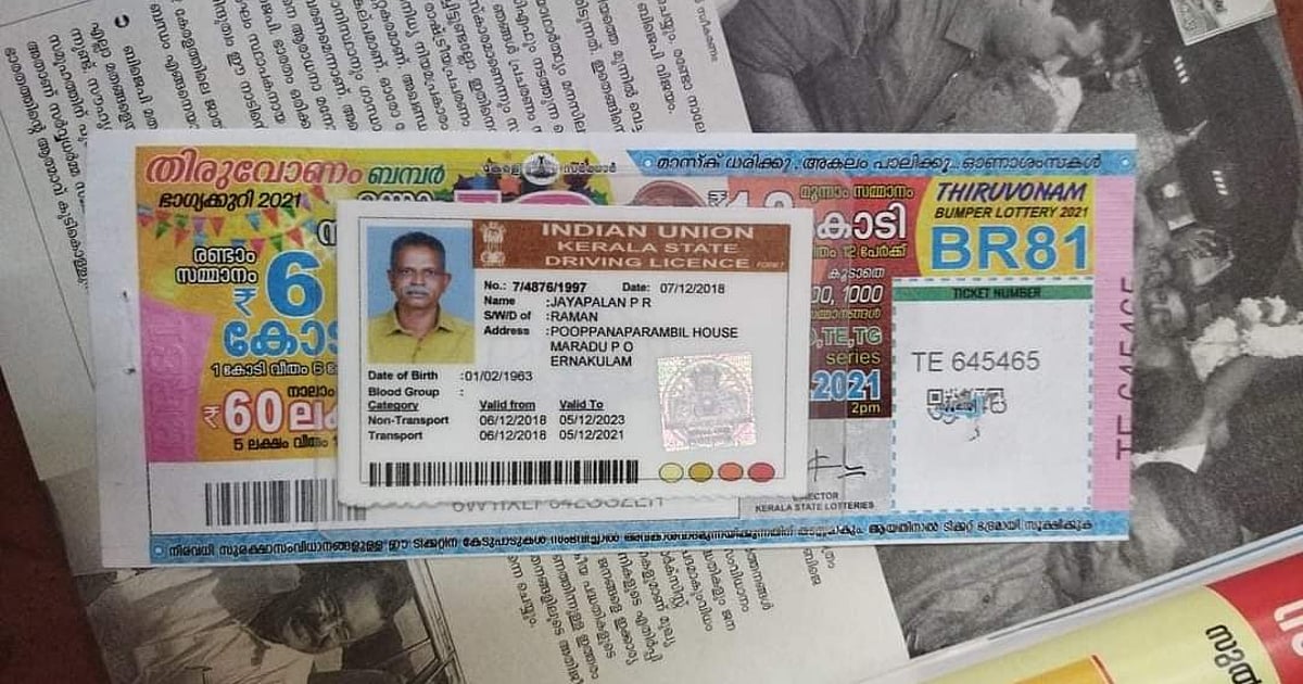 இதையடுத்து எர்ணாகுளம் மாவட்டம் மரட் பகுதியைச் சேர்ந்த ஆட்டோ டிரைவர் ஜெயபாலன்(56) என்பவருக்கு ஓணம் பம்பர் பரிசு விழுந்திருப்பது உறுதி செய்யப்பட்டுள்ளது. இதுபற்றி ஜெயபாலன் கூறுகையில், "லாட்டரி சீட்டு வாங்கும் பழக்கம் எனக்கு உண்டு. எனது லாட்டரிக்கு முதல் பரிசு விழுந்திருப்பதை டி.வி செய்தி மூலம் அறிந்துகொண்டேன். அதுபற்றி குடும்பத்தில் சிலரிடம் மட்டும் தகவல் தெரிவித்தேன். அந்த சமயத்தில் சமூக வலைத்தளங்களில் மற்றொருவருக்கு லாட்டரி சீட்டில் பரிசு கிடைத்திருப்பதாக தகவல் வந்ததால் இதுபற்றி வெளியில் சொல்லாமல் இருந்தேன்.ரூ.12 கோடி லாட்டரி பரிசுபெற்ற ஜெயபாலன்