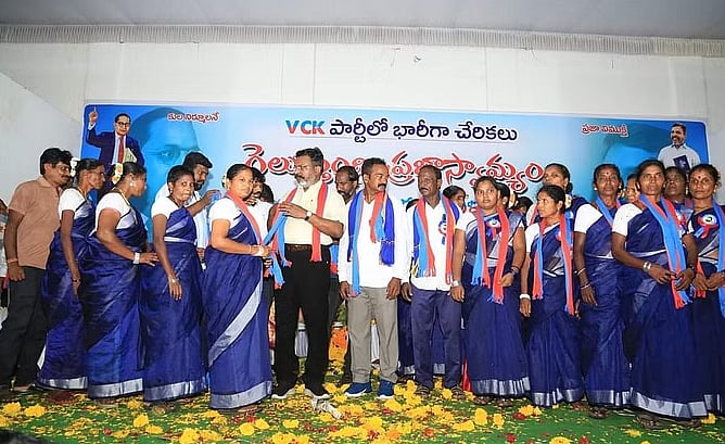 விவரமறிந்தவர்கள் சிலரோ, ``இந்திய அரசியலில் பட்டியல் சமூகத்தின் பிரதிநிதியாகத் தன்னை அடையாளப்படுத்திக்கொண்ட பல அரசியல் கட்சித் தலைவர்கள் தற்போதைய நிலையில் பா.ஜ.க-வுடன் கைகோர்ப்பதும், பா.ஜ.க-வோடு மென்மையான போக்கைக் கைபிடிப்பதுமாக இருக்கிறார்கள். எனவே பா.ஜ.க எதிர்ப்பு மனநிலை கொண்ட பட்டியல் சமூக வாக்காளர்களைக் குறிவைத்துக் காய்நகர்த்துகிறது விடுதலை சிறுத்தைகள் கட்சி. ஆனால் தெலங்கானா, கேரளா மற்றும் கர்நாடகா ஆகிய மாநிலங்களில் `இந்தியா’ கூட்டணியுடன் தொகுதி பங்கீடு செய்துகொள்ள வாய்ப்பே இல்லை என்பது வி.சி.க-வுக்குள்ள சிக்கல். தனித்து களமிறங்கினால் அது `இந்தியா’ கூட்டணிக்குஎதிராக போய்விடாதா என்ற கேள்வியும் கிளம்பிருக்கிறது” என்றனர்.