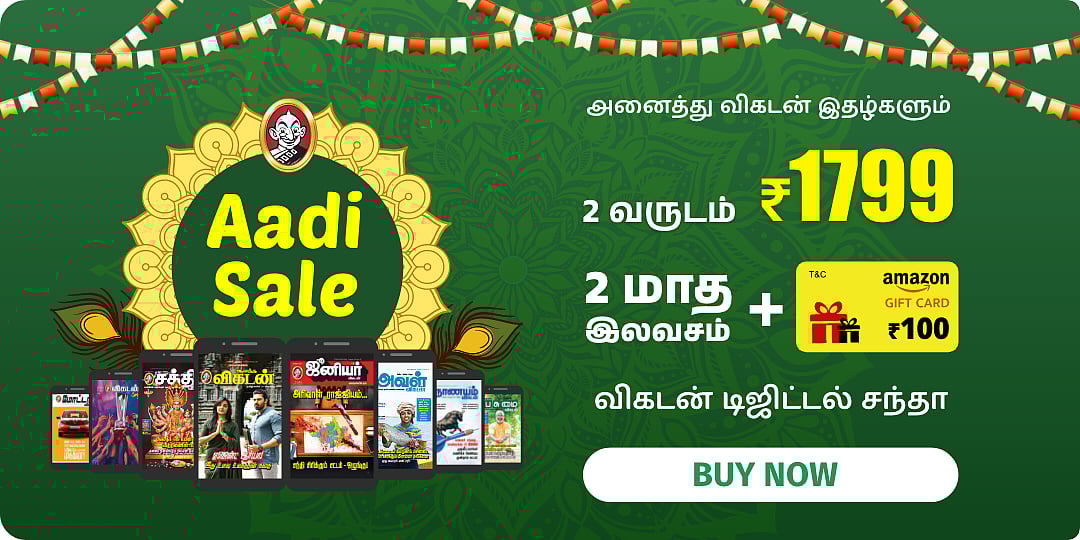 * Save ₹1,199> ₹2998 மதிப்புள்ள 2 வருட விகடன் டிஜிட்டல் சப்ஸ்கிரிப்ஷனை ₹1799 ரூபாய்க்கு பெறுங்கள். மேலும் 2 மாத சந்தா + 100 மதிப்புள்ள அமேசான் கூப்பன் இலவசம் !