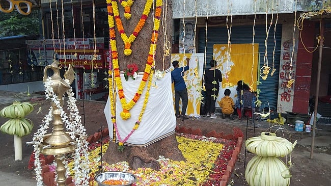 மனிதர்களுக்கு மட்டுமே கொடுத்து வந்த பிரியாவிடை நிகழ்ச்சி, முதன்முறையாக மரத்துக்கு நிகழ்த்தி அசத்தியிருக்கின்றனர் கேரள மாநிலம், திருவனந்தவுரம் அடுத்த செம்பகமங்கலம் கிராம மக்கள்.