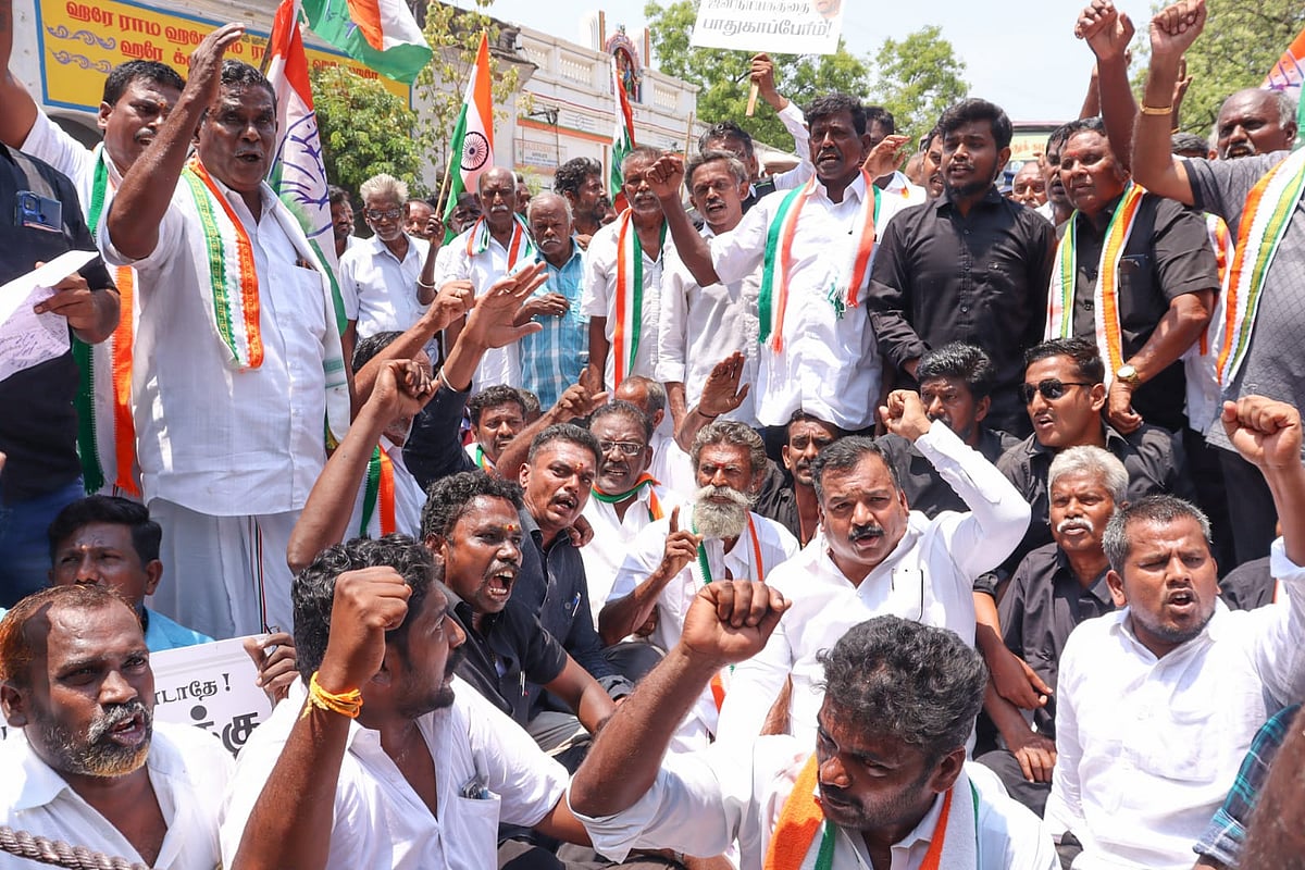 அதன்படி விருதுநகர் ரயில்வே பீடர் சாலையிலுள்ள வி.வி.ஆர் சிலை முன்பாக இன்று காலை விருதுநகர் காங்கிரஸ் கமிட்டி உறுப்பினர்கள், தொண்டர்கள், மகிளா காங்கிரஸ் நிர்வாகிகள் என நூற்றுக்கும் மேற்பட்டோர் அணியாகத் திரண்டனர்.