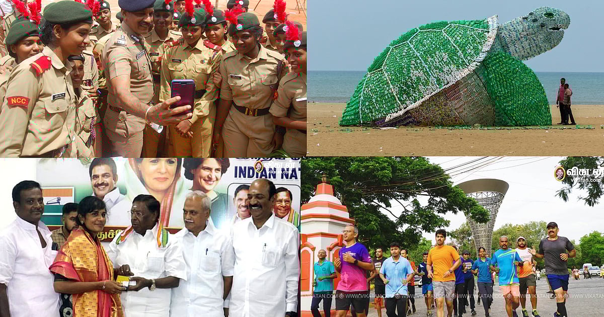 » செல்ஃபி எடுத்த டிஜிபி |பிரமாண்ட கடல் ஆமை சிற்பம்|எவரெஸ்ட் ஏறிய மாணவிக்குப் பாராட்டு - News in Photos