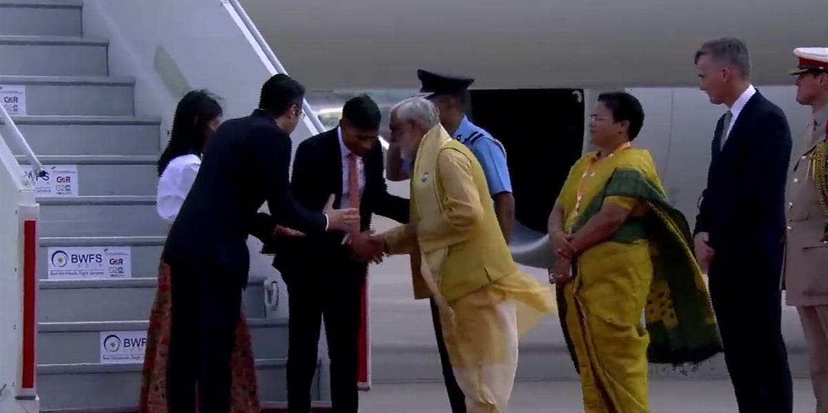 டெல்லியில் நாளையும், நாளை மறுநாளும் (செப்டம்பர் 9, 10) இந்தியா தலைமையில் 18-வது ஜி 20 உச்சி மாநாடு நடைபெறவிருக்கிறது. இதன் காரணமாக டெல்லி முழுவதும் பாதுகாப்பு ஏற்பாடுகள் தீவிரமாக பலப்படுத்தப்படுகின்றன. இன்னொரு பக்கம், ஜி 20 அமைப்பிலிருக்கும் உலக நாடுகளின் அதிபர்களும், பிரதிநிதிகளும் தொடர்ந்து வந்தவண்ணம் இருக்கின்றனர்.ரிஷி சுனக் - மத்திய அமைச்சர் அஷ்வினி குமார் சௌபே