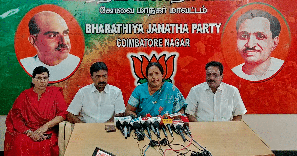 கோவை மாநகர் பா.ஜ.க அலுவலகத்தில் பா.ஜ.க தேசிய மகளிர் அணி தலைவரும், கோவை தெற்கு தொகுதி எம்.எல்.ஏ-வுமான வானதி ஸ்ரீனிவாசன், பத்திரிகையாளர்களைச் சந்தித்தார்.