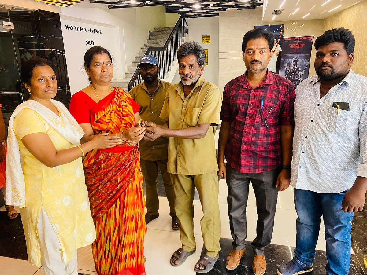 அவர் அங்கு குப்பை அள்ளி வந்த வாகனத்தை சாலையோரம் நிறுத்தி காணாமல் போன தங்கக்காப்பை தேடியுள்ளார்கள். அதில், தூய்மை பணியாளர் மணிவேல் கையில் தாங்க காப்பு கிடைத்தது. உடனே அதனை தேடிய குழந்தையின் தந்தைக்கு தகவல் கொடுத்தனர். அவர்கள் வந்து தூய்மை பணியாளர்களிடமிருந்து தங்கக்காப்பை பெற்றுக் கொண்டனர். குழந்தை தவறவிட்ட தங்க காப்பை தூய்மை பணியாளர்கள் குப்பையில் இருந்து மீட்டு ஒப்படைத்த தகவலை அறிந்த மாநகராட்சி அதிகாரிகள் அவர்களை வெகுவாக பாராட்டினர்.