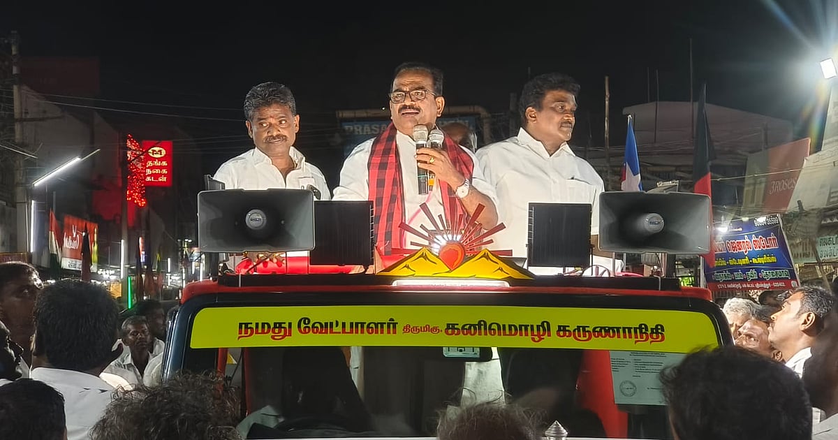 நாடாளுமன்றத் தேர்தலில் இந்தியா கூட்டணி சார்பில், தூத்துக்குடி நாடாளுமன்றத் தொகுதியில் தி.மு.க வேட்பாளராக போட்டியிடும் கனிமொழியை ஆதரித்து தூத்துக்குடி மாவட்டம், புதுக்கோட்டையில் திராவிட இயக்கப் பேச்சாளா் நாஞ்சில் சம்பத் தேர்தல் பரப்புரை மேற்கொண்டார். அதில் பேசிய அவர், "தூத்துக்குடியில் பெய்த மழை காலங்களில் கனிமொழி மட்டும் இந்த தொகுதிக்கு எம்.பியாக கிடைக்கவில்லை என்றால் மிகப் பெரிய பாதிப்பையும் இழப்பையும் நாம் சந்தித்திருப்போம். நாஞ்சில் சம்பத் பரப்புரை