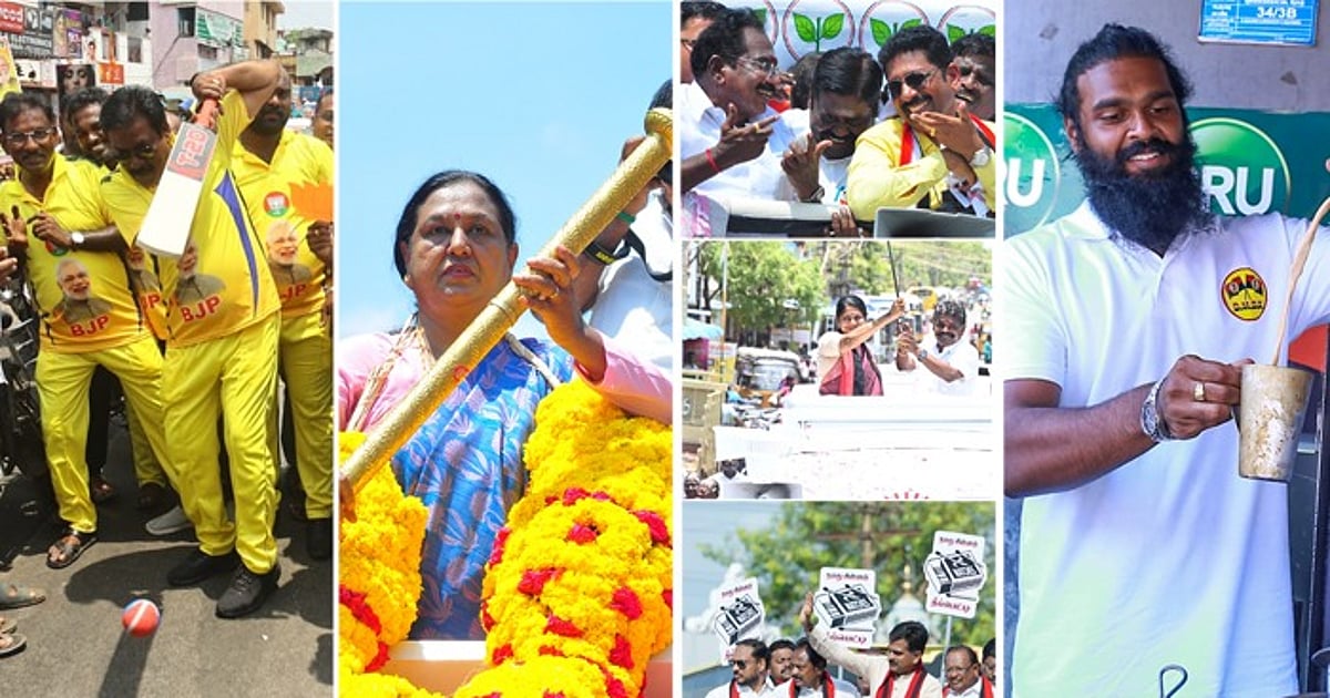 » பேட் தூக்கிய பாஜக வேட்பாளர், வாளேந்திய கனிமொழி `டு' டீ ஆத்திய சண்முக பாண்டியன் - Election Clicks
