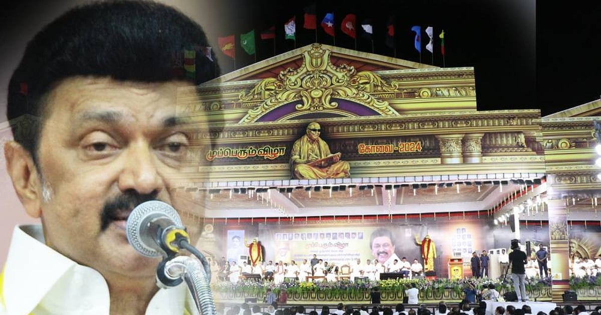 "இது சாதாரண வெற்றி அல்ல. வரலாற்றுச் சிறப்புமிக்க வெற்றி. நம் அரசின் மீது நம்பிக்கை வைத்து வாக்களித்துள்ள, மக்களுக்குக் கிடைத்த வெற்றி. இந்திய அரசியலமைப்பு சட்டத்தை மாற்ற நினைத்தவர்கள், அம்பேத்கரின் அரசியல் சாசனம் முன்பு தலைகுனிந்து நிற்கின்றனர். இந்த மேடையில் உள்ள தலைவர்களிடையே அரசியல் உறவு இல்லை. இது கொள்கை உறவு. தேர்தல் அறிவித்த பிறகும் பாஜக விதிகளை மீறி வெறுப்பு பிரசாரத்தில் ஈடுபட்டது. திமுக முப்பெரும் விழா