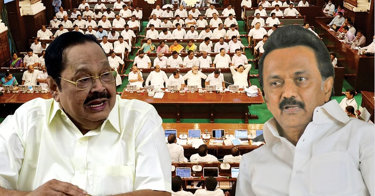 ``ஆமா, இருப்பேன்.." என மீண்டும் ஒரு கதைக்குள் சென்றார் துரைமுருகன். ”சண்டைக்கு அப்பறம் ஆளுநர் அழைத்த தேநீர் விருந்தில் நானும் முதல்வரும் கலந்துகொண்டபோது, ஆளுநர் என்னோட வயசப்பத்தி கேட்டார். முதலமைச்சரோ, `அவர் என் அப்பாவோடு 53 ஆண்டுக்காலம் இருந்தவர், இப்போது என்னோடு இருக்கிறார், உதயாவோடும் இப்போது இருக்கிறார்’ என்றார். அதற்கு நான் சொன்னேன், `உதயாவுக்கு ஒரு பையன் இருக்கான், அவனோடவும் நான் இருப்பேன்' என்றேன்" என்றார்... துரைமுருகன் இப்படிச் சொன்னதும் அவையில் முதல்வர் உட்பட அனைத்து உறுப்பினர்களும் வெடித்துச் சிரித்தனர்.